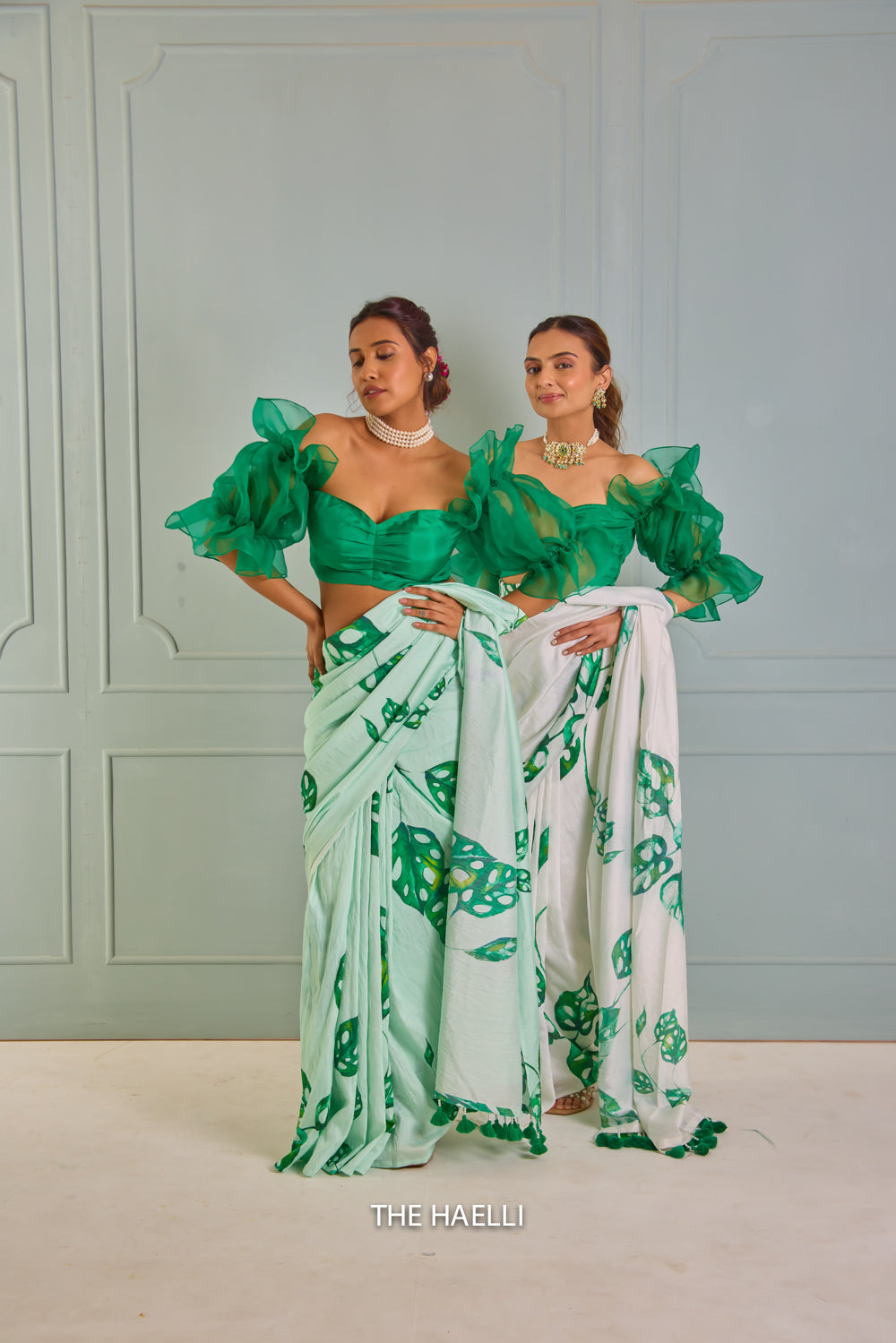 PS: Predraped sarees come with front stitched pleats with adjustable waist hooks which fits S to XL (28 to 38 inches) waist. Please mention your waist size in note section if you wish to size up or down. Height of the saree is un touched, can be adjusted by tucking in the underskirt. Underskirt not included with predrape.