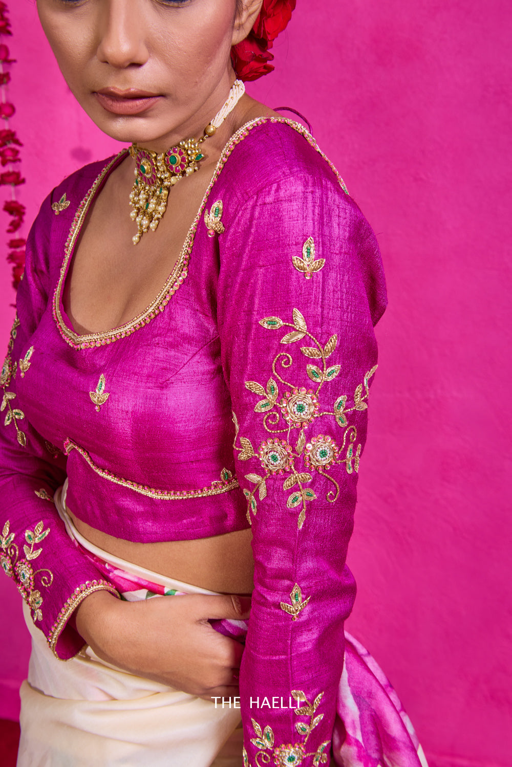 NOTE: Slight difference in the color is possible due to photography lights and different screen resolution of mobile or laptop screens. Since the blouse is 100% handloom, you might find slight thread discoloration/inconsistency in the weave, which does not imply any defect to the fabric but adds to the charm of a handmade product. Measurements mentioned above may vary slightly with different sizes.