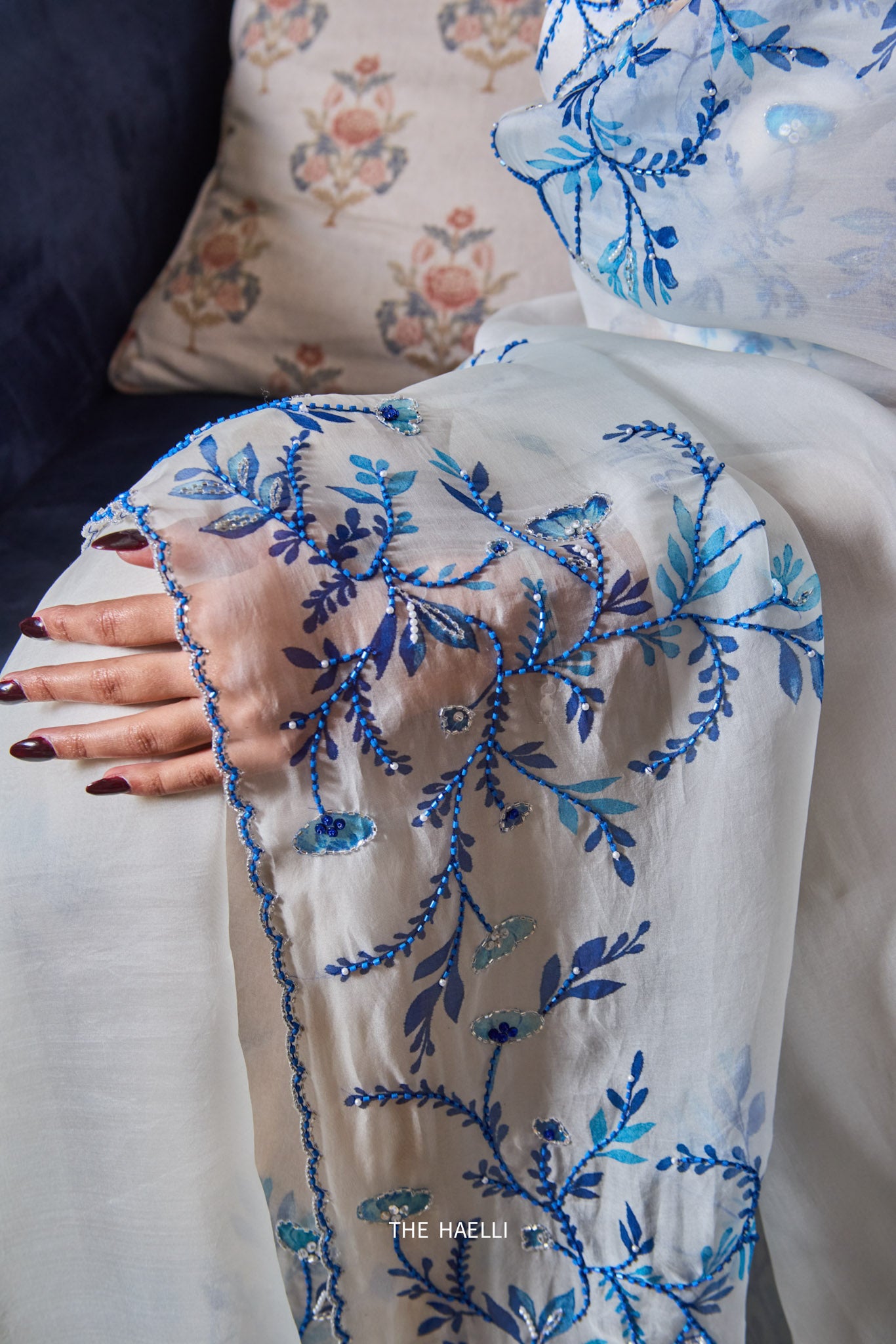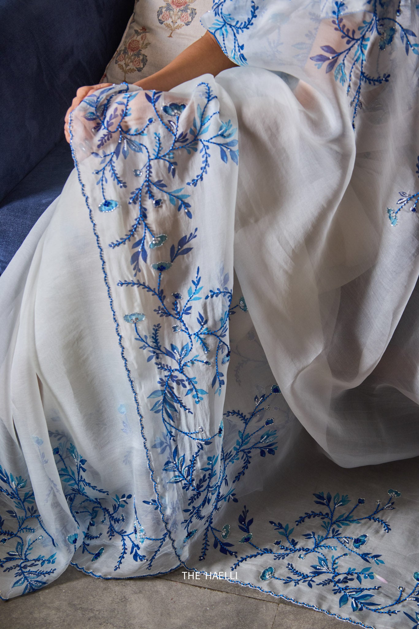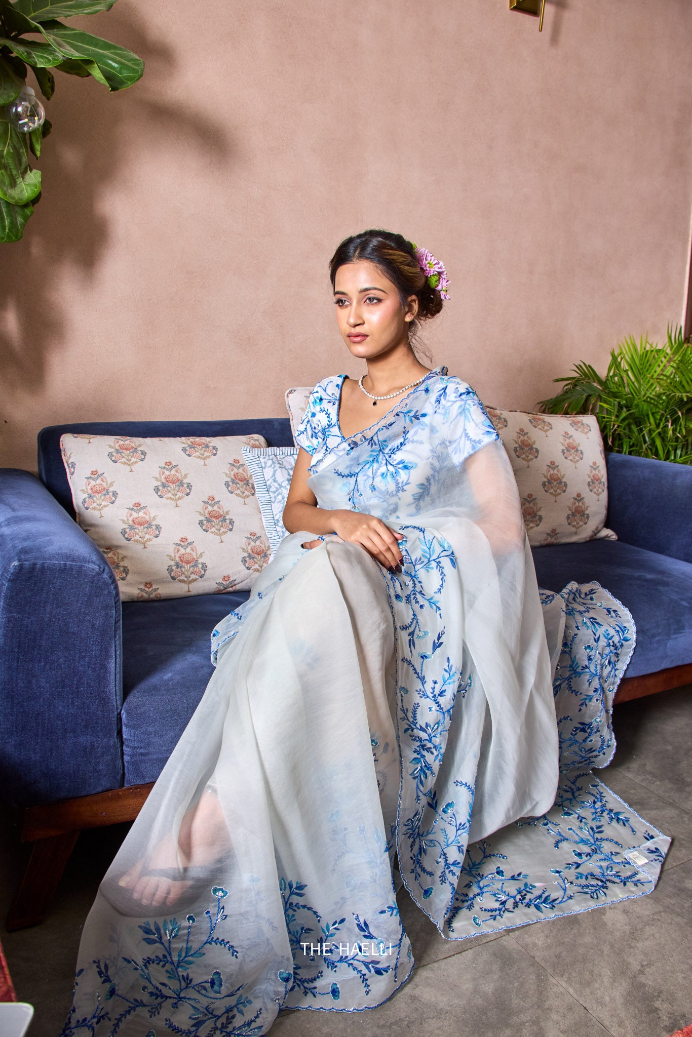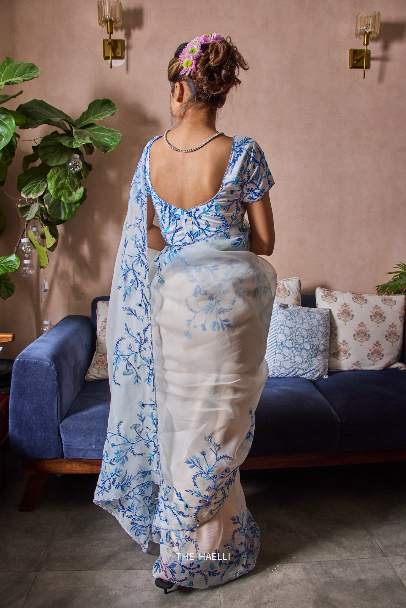 NOTE: Slight difference in the color is possible due to photography lights and different screen resolution of mobile or laptop screens. Slight irregularities in organza fabric like weaving or white marks, if visible, indicates fabric's purity and is not considered defected. Dimensions may vary slightly with each lot, since products are not mass produced. Fall attached, blouses stitched/unstitched or underskirts listed along with the saree may have slight color differences as compared to the saree since colors may appear dissimilar on different fabric qualities.