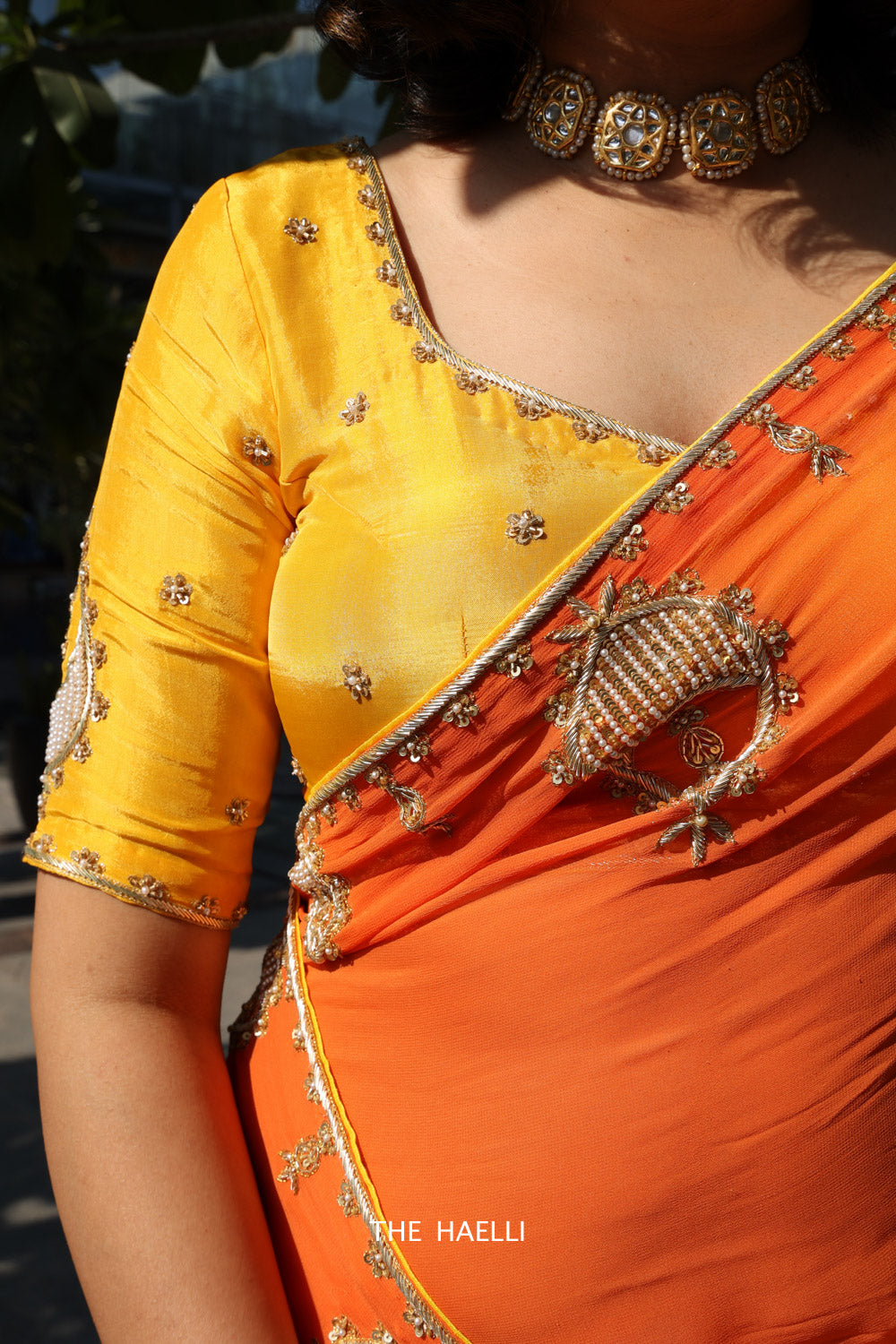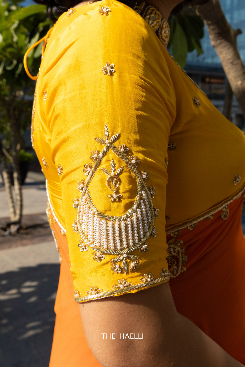 Maharaani Yellow Hand-Embroidered Silk Blouse