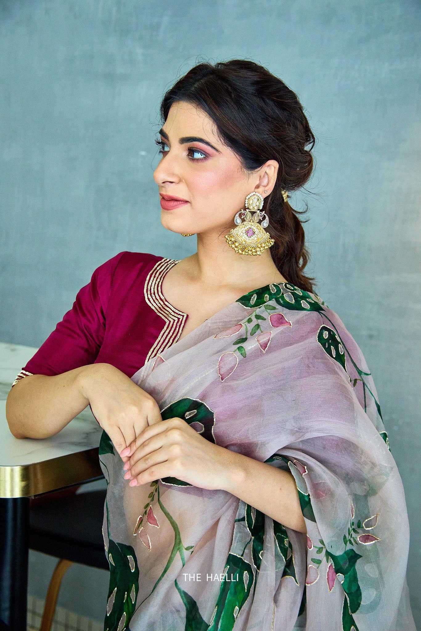 The Mishti blouse in Pitta hand embroidery is crafted in Uppada silk. The gold neck detailing makes it exquisite and perfect fit for your traditional closet. This blouse can be mixed and matched effortlessly.