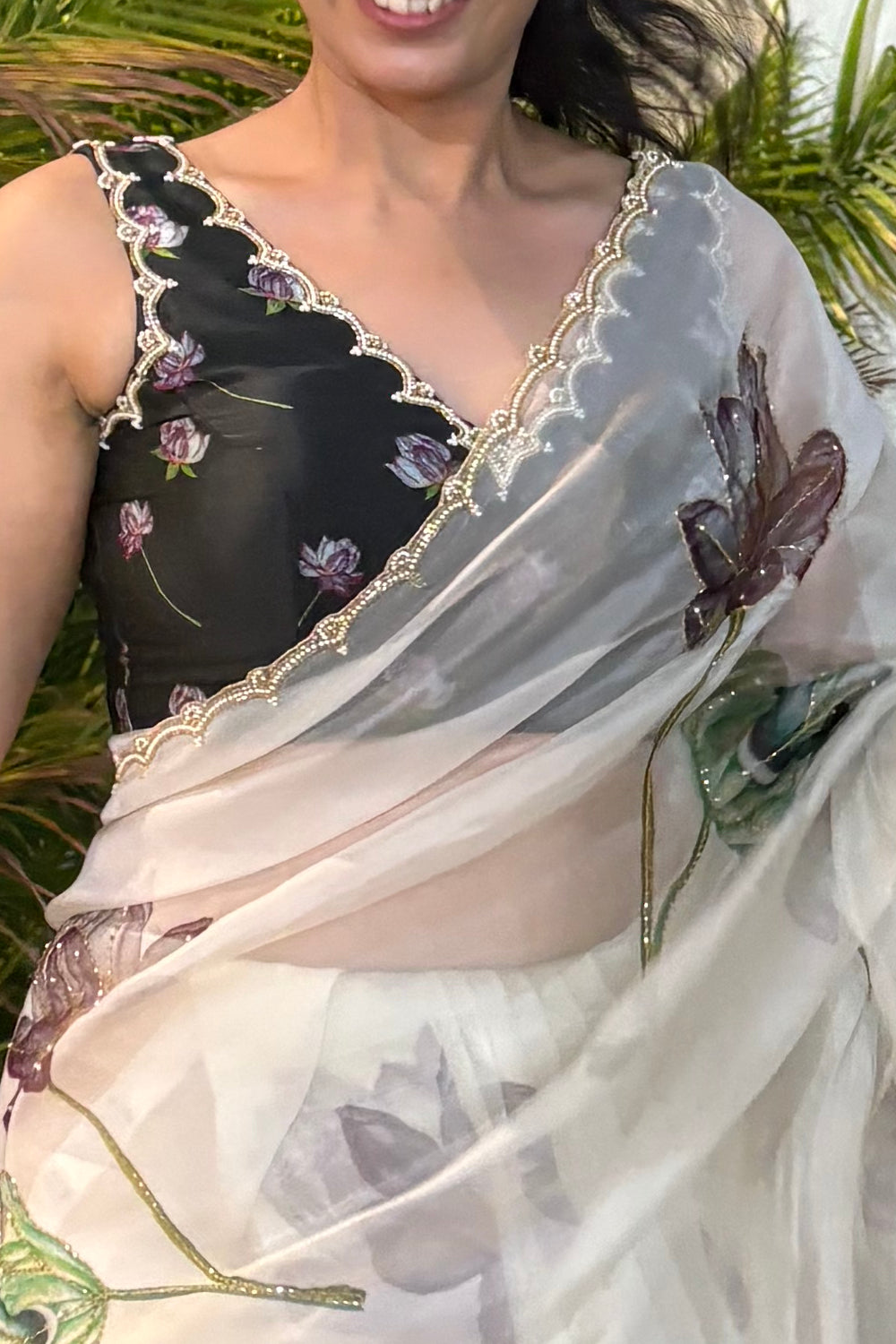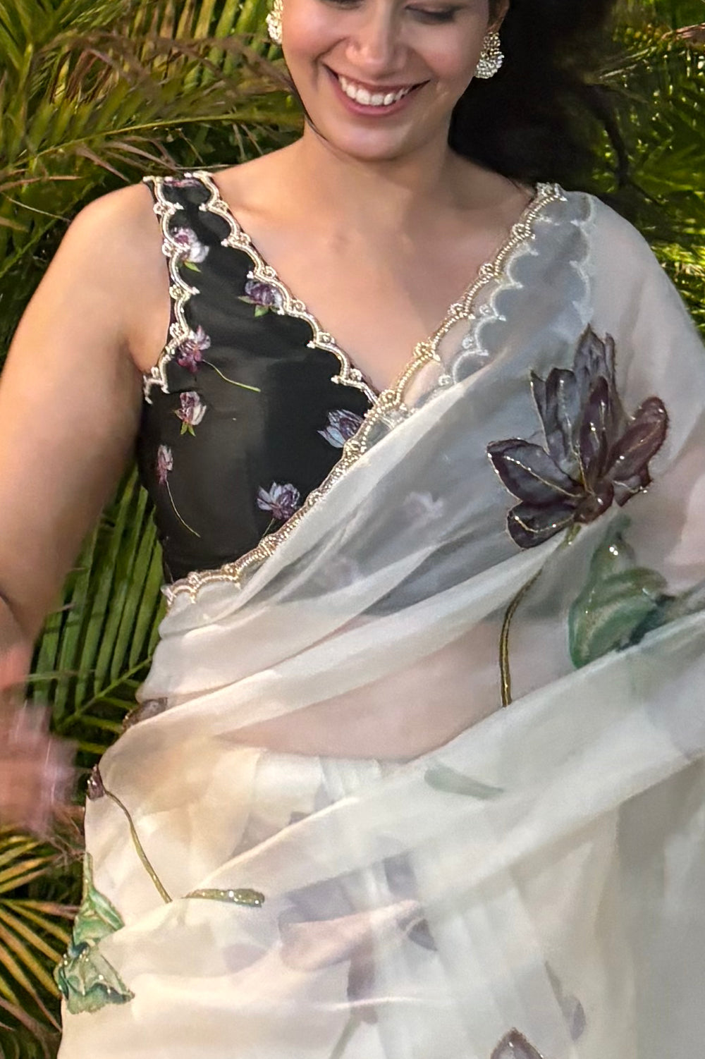 NOTE: Slight difference in the color is possible due to photography lights and different screen resolution of mobile or laptop screens. Since the fabric is very soft and delicate, it has a tendency to get slight thread impressions due to embroidery or stitching, which does not imply any defect to the fabric. Measurements mentioned above may vary slightly with different sizes. Measurements mentioned above are for ready blouse, which may vary slightly with different sizes. All our blouses have 1-2 inch margins to be altered if required later.