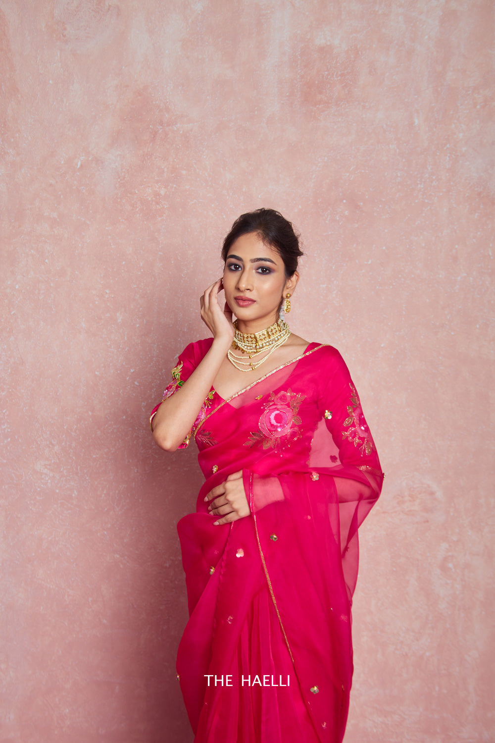 NOTE: Slight difference in the color is possible due to photography lights and different screen resolution of mobile or laptop screens. Slight irregularities in organza fabric like weaving or white marks, if visible, indicates fabric's purity and is not considered defected. Dimensions may vary slightly with each lot, since products are not mass produced. Fall attached, blouses stitched/unstitched or underskirts listed along with the saree may have slight color differences as compared to the saree since colors may appear dissimilar on different fabric qualities.