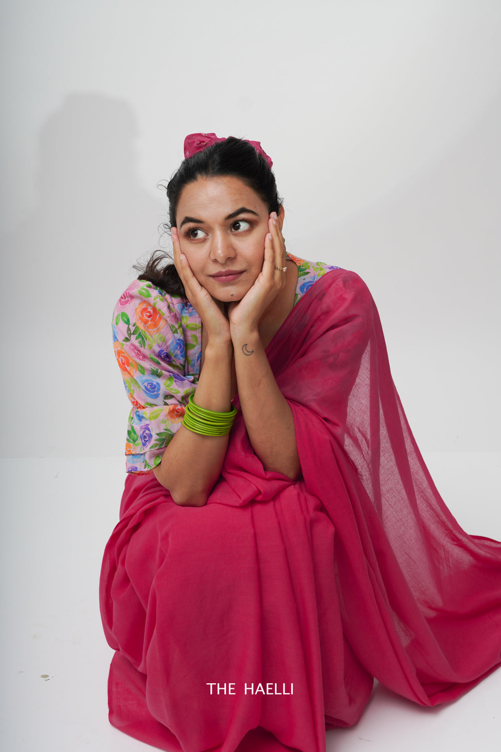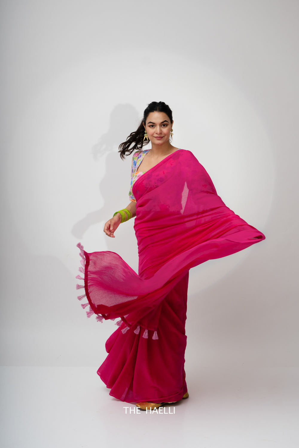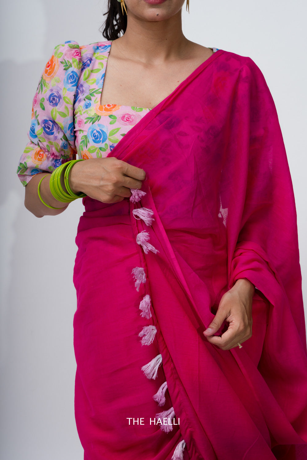 Cotton Saree on a budget, raani pink saree with a pop of pink cotton handmade tassels at the pallu.