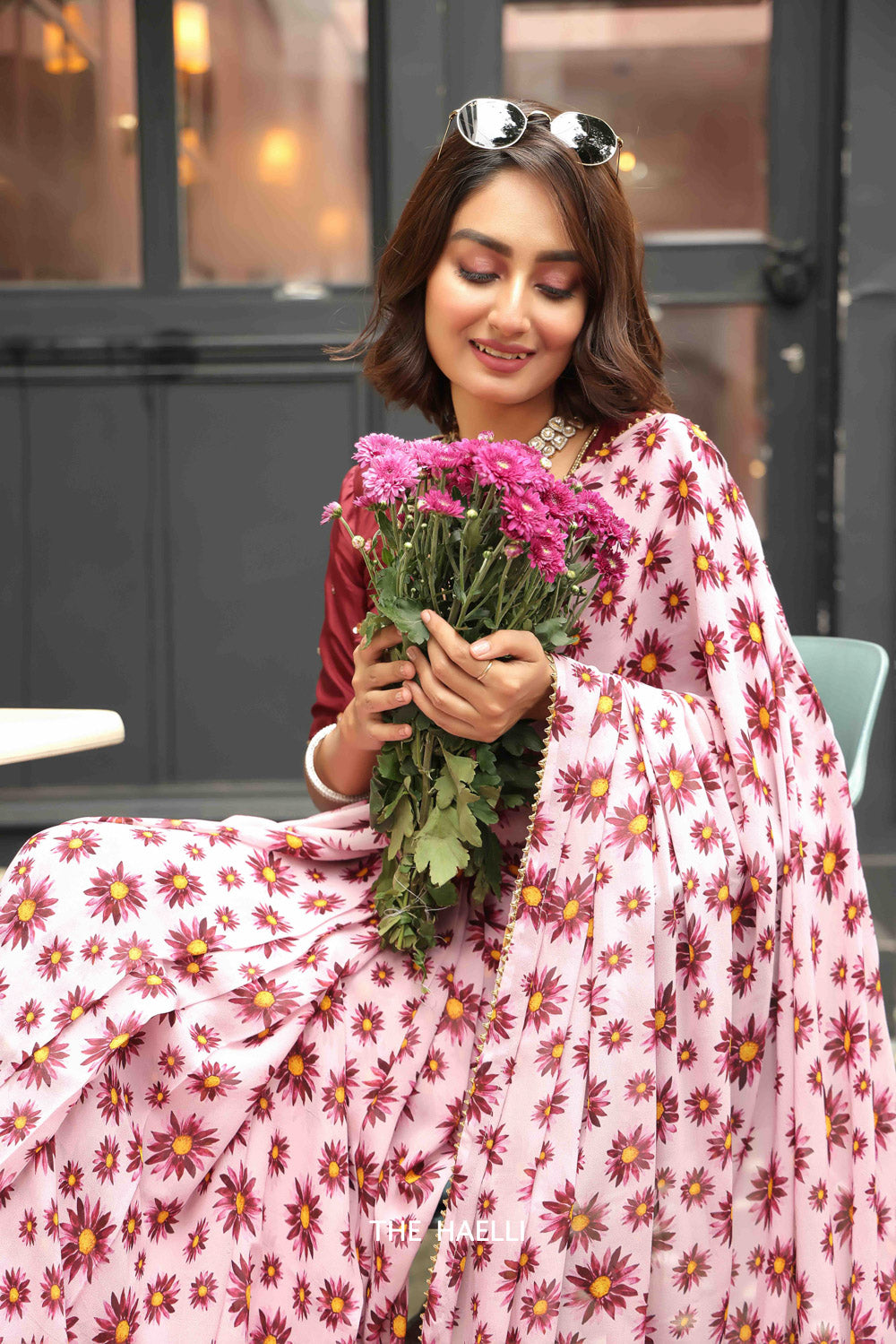 Our quirky statement georgette saree with printed flowers is just perfect if you are a saree lover and enjoy experimenting with your style.