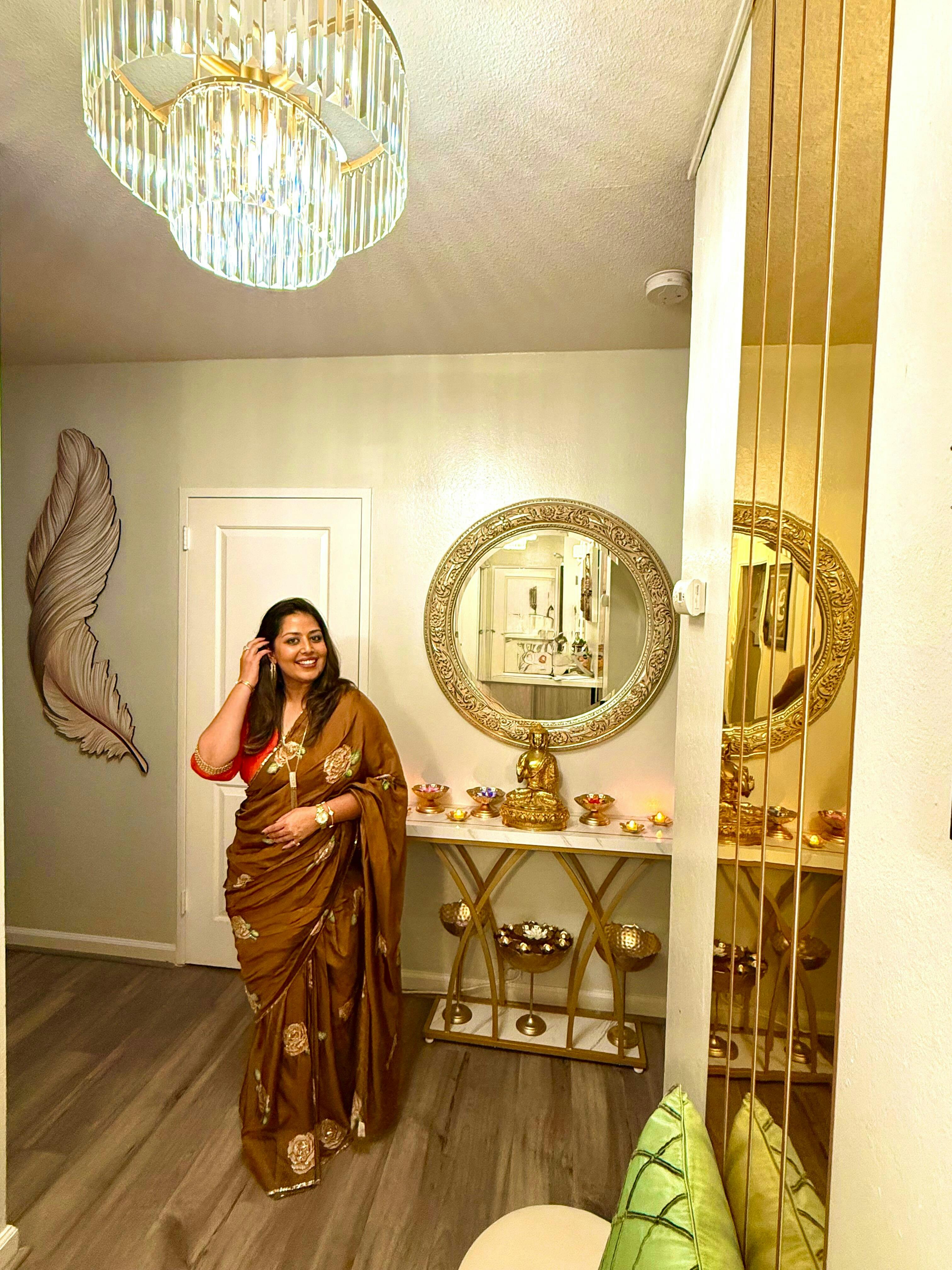 PS: Predraped sarees come with front stitched pleats with adjustable waist hooks which fits S to XL (28 to 38 inches) waist. Please mention your waist size in note section if you wish to size up or down. Height of the saree is un touched, can be adjusted by tucking in the underskirt. Underskirt not included with predrape.