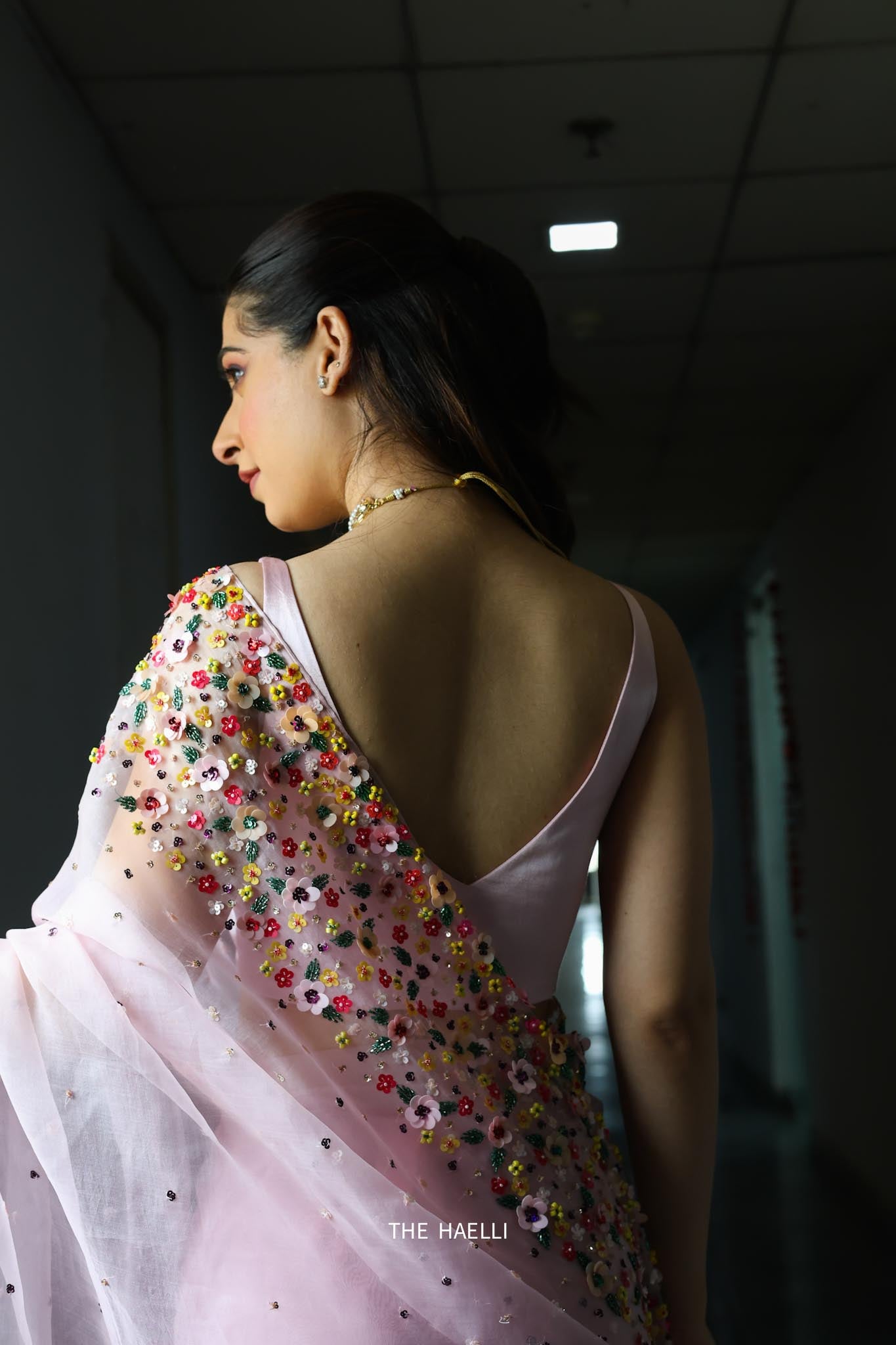 The Velora blouse is designed in Satin Lycra. This stretchable fabric makes it easy to fit on any body shape making it a versatile piece. This simple yet elegant piece will elevate the entire look and give it a classy and timeless touch.